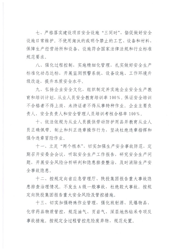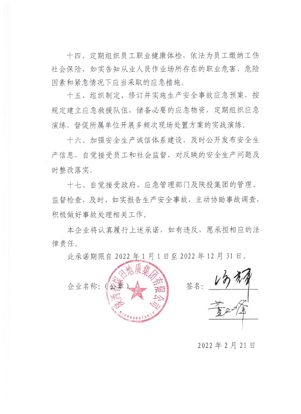 煤田地质集团落实企业主体责任承诺书
