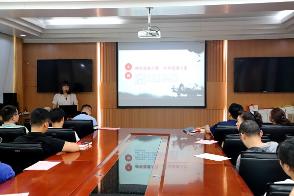 谈感悟环节,有的人现场分享了自己对读书的感悟,有的人把自己的所思、所想、所悟写到道德感悟卡上。最后,送祝福环节,公司党委书记、总经理岳正喜为公司所有职工和中层分别赠送了书籍,并勉励大家要将阅读融入到日常生活和工作中,培养良好阅读习惯,为公司转型发展贡献智慧和力量。