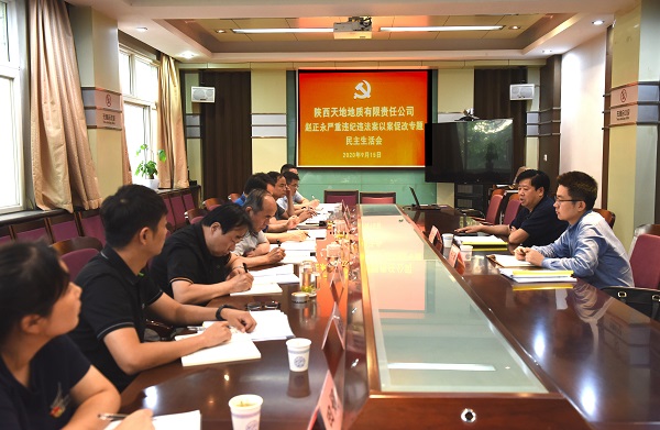 天地地质及天地建设领导班子成员参会。会议由天地公司党委书记、董事长、总经理姬永涛主持,姬永涛代表班子做对照检查,班子成员逐一进行个人对照检查,并开展批评与自我批评。