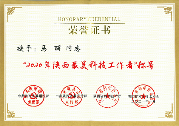重点实验室马丽荣获“陕西最美科技工作者”称号