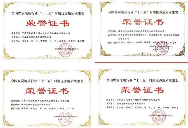 经过中国煤炭协会评选,从全国570 项优秀成果中选出了49 项入选《全国煤炭地质行业十三五优秀地质成果汇编》,其中实验室上述四项成果入选该成果汇编。
