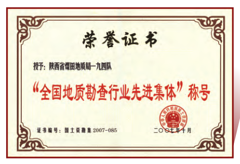 荣获“全国地质勘查行业先进集体”称号